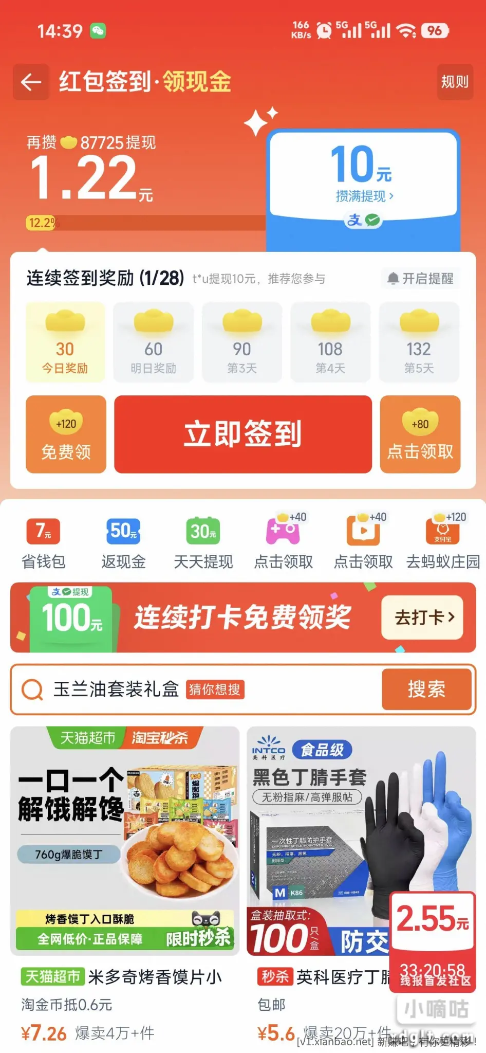 淘宝红包签到这段时间没进去,进去提示新版本 就是小毛