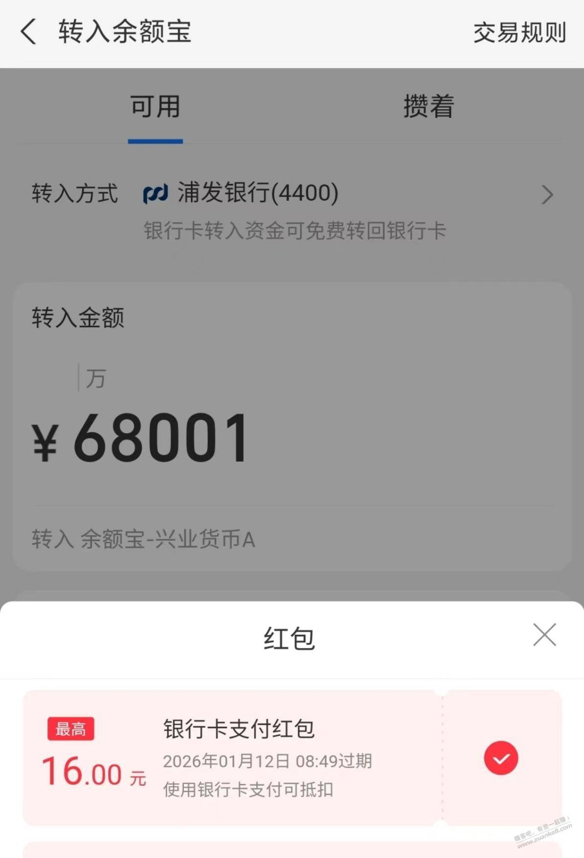 余额宝页面有大额红包,但是很奇怪卡包券里找不到