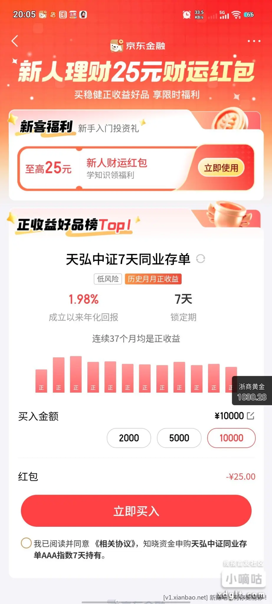 京东金融App 首页部分弹25r卷 应该不会亏损 7天后卖出 10000-25 速度{:爱你:}