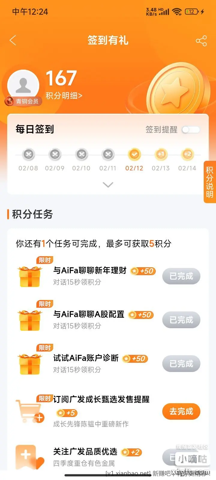 上车,广发基金任务中心做三个拿积分,商城换红包,三个都能兑,但是8.8是明天开始限量88个得蹲,3.88+0.88速度去,限量