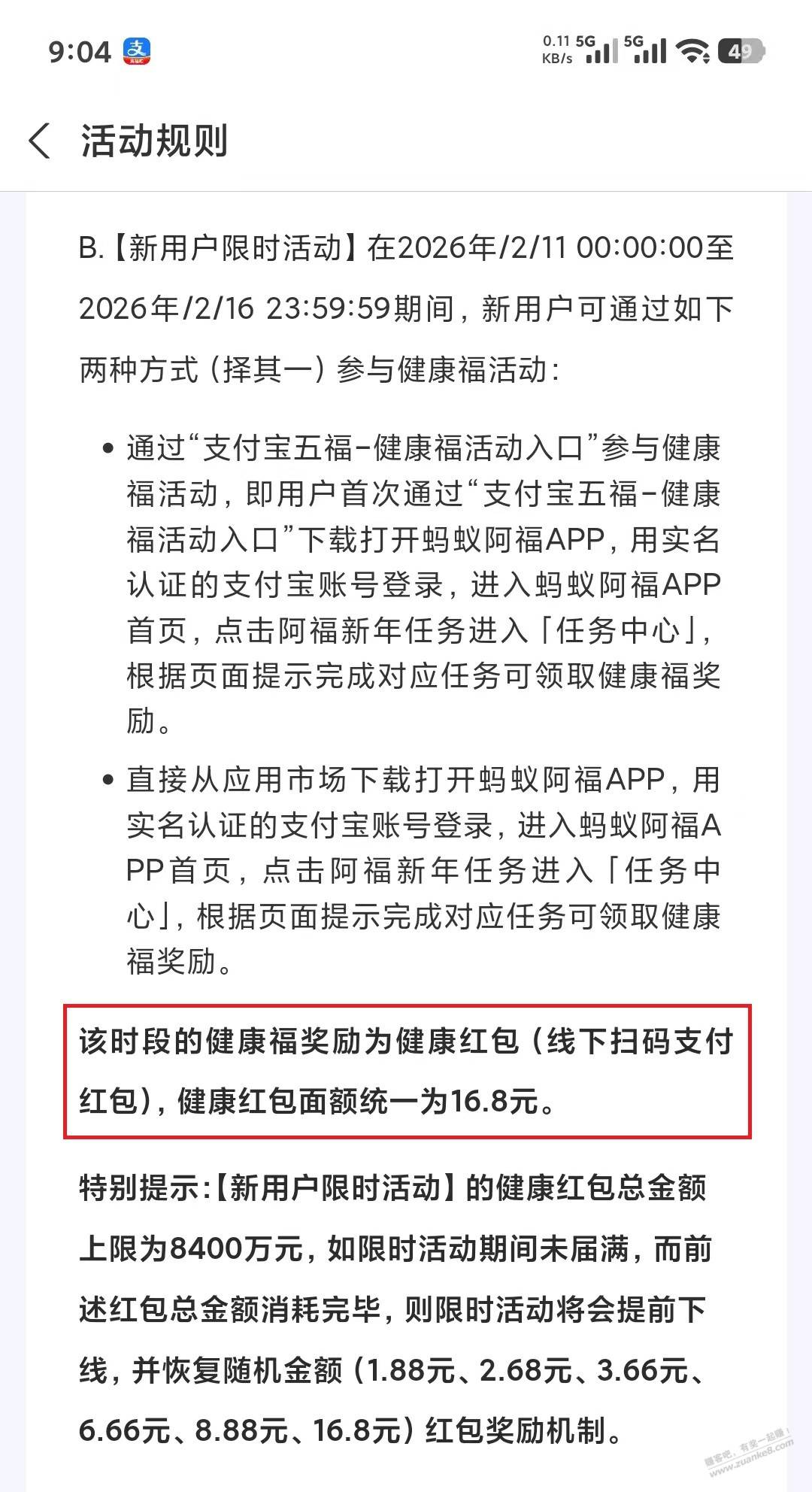 支付宝集福的健康红包全部16.8了,前面还没领的迅速. 等等党又赢了.