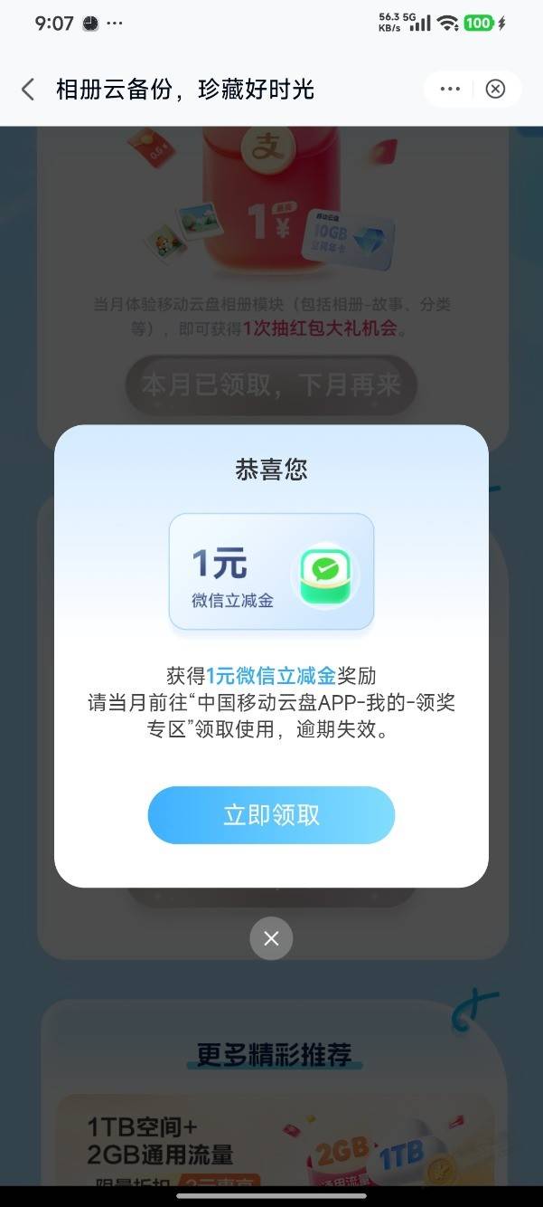山东移动抽立减金