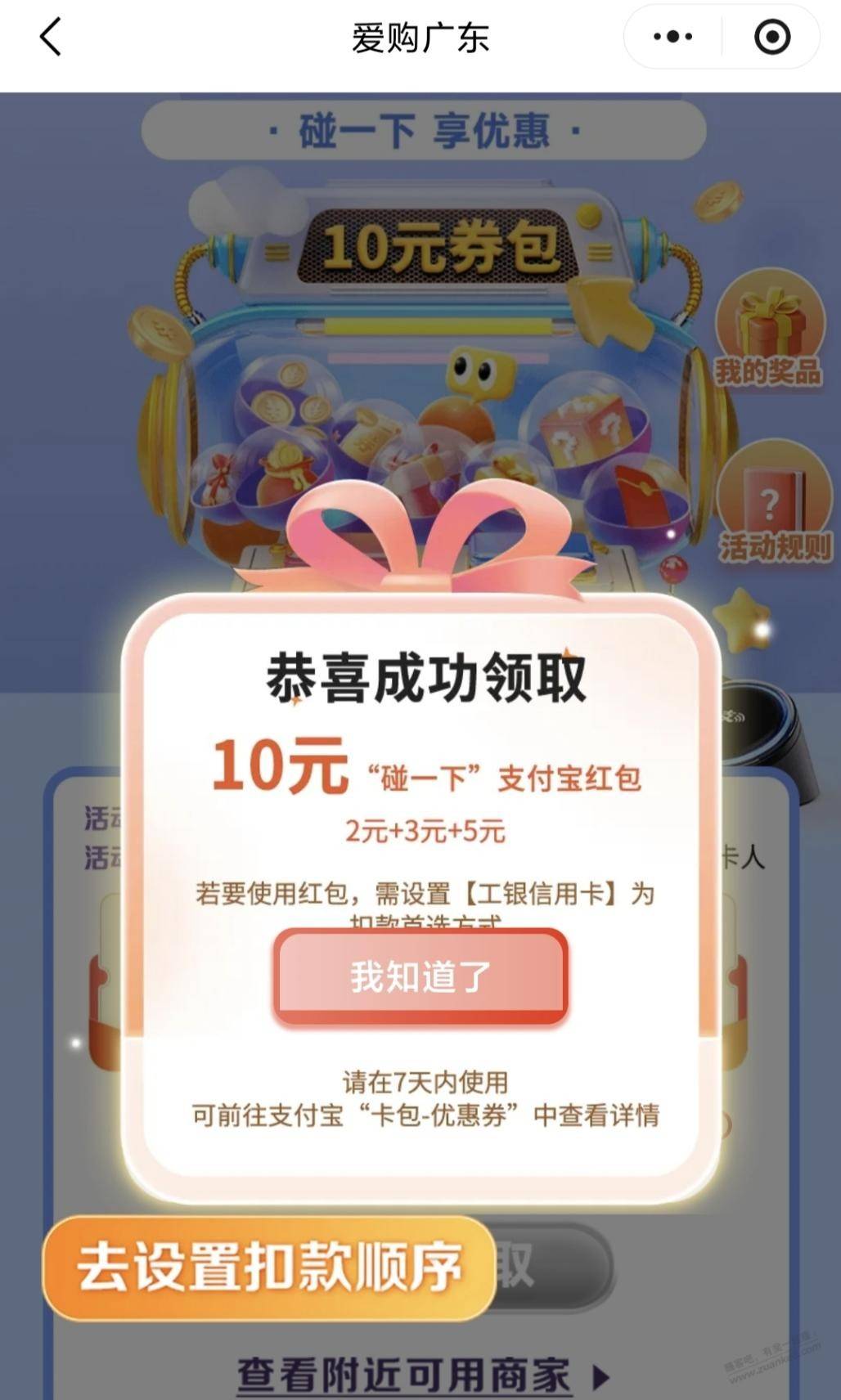 【广东】工行碰一碰10元立减金