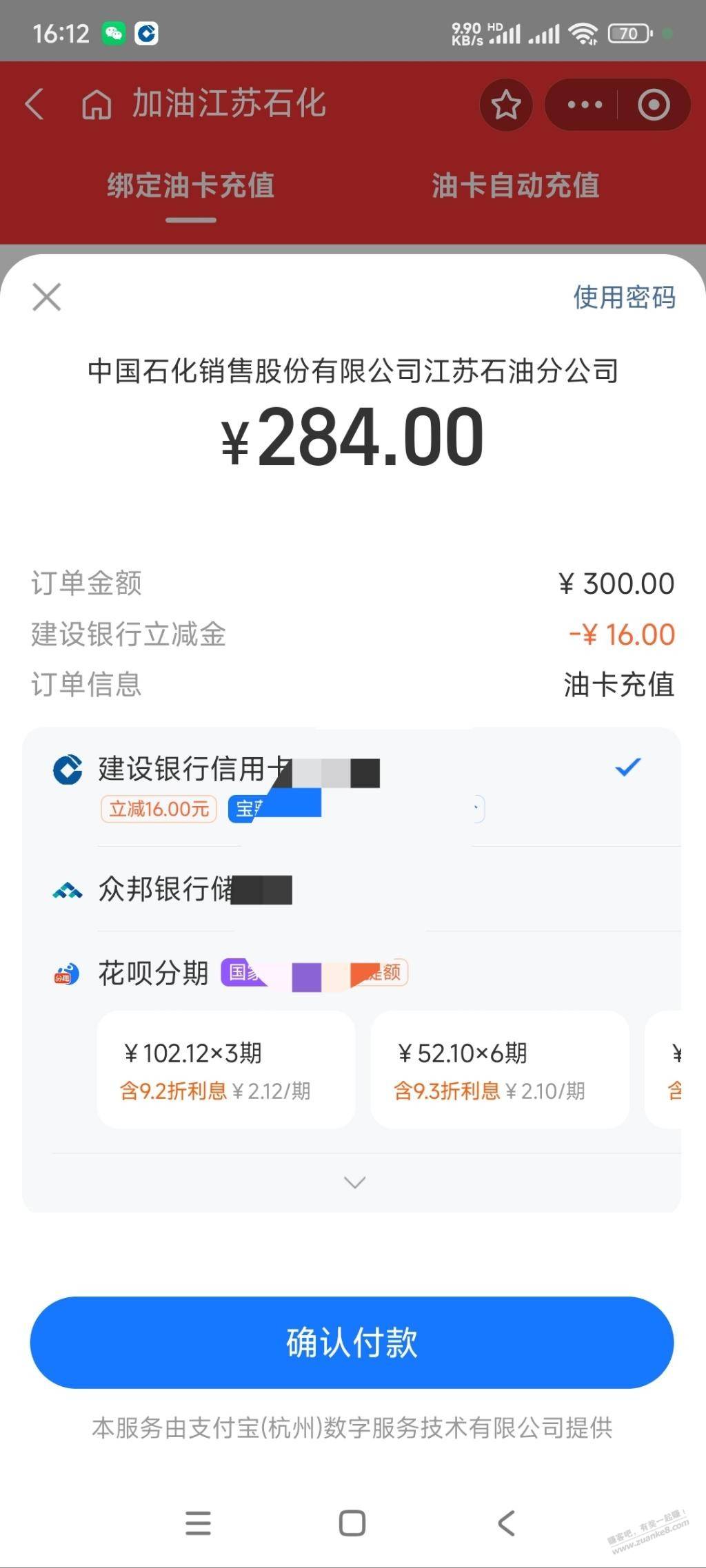 建行充油卡300-16