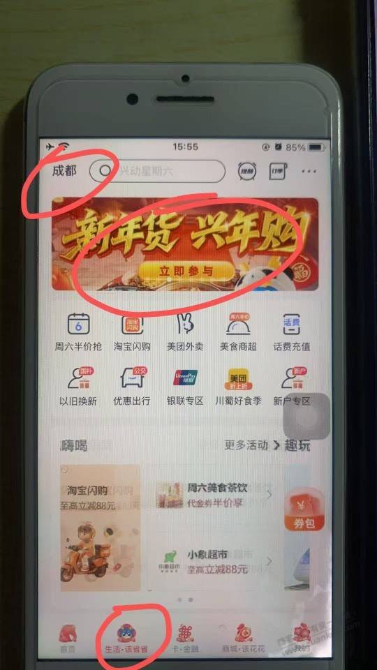 兴业生活,切换城市成都,生活该省省,顶部滚动栏