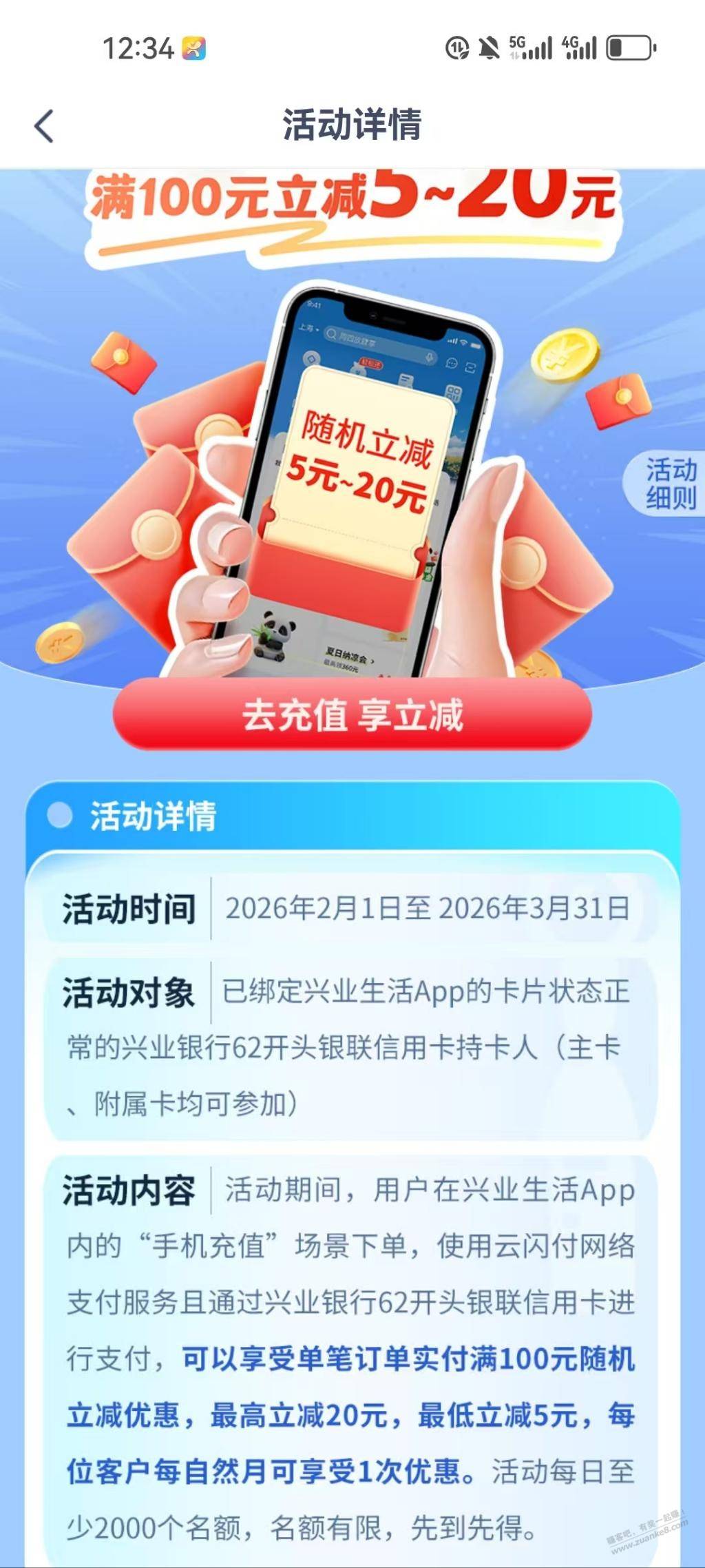 兴业生活100话费随机减5-20