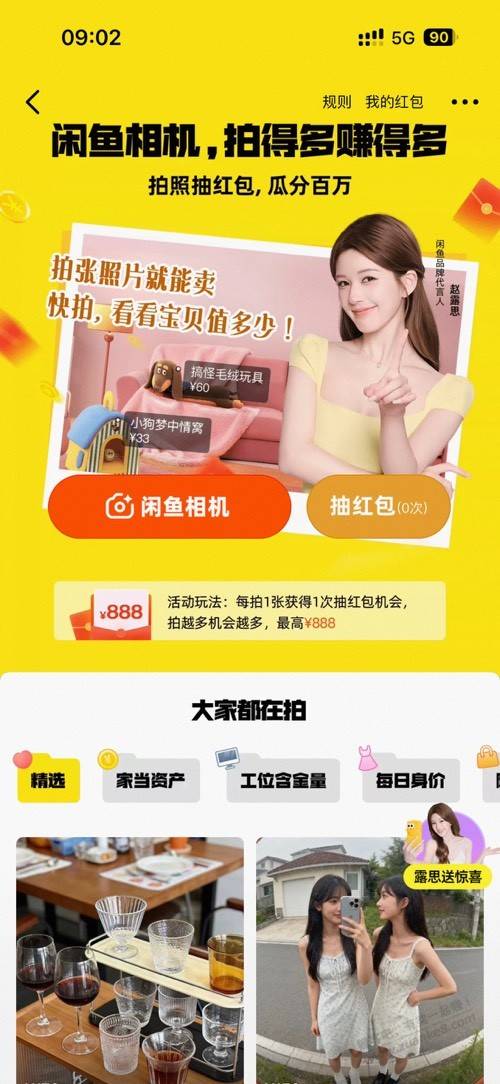 闲鱼首页横幅(最新版本),拍照抽红包。一天10次。