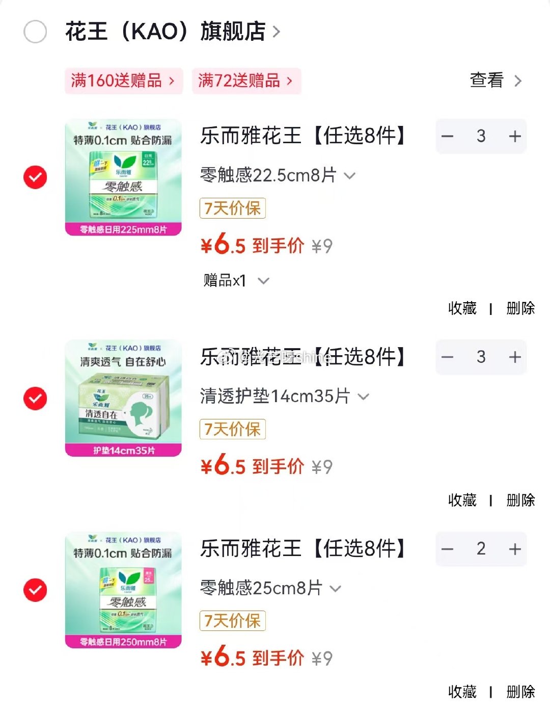 乐而雅花王 零触感卫生巾25cm8片等,任选8件【52】