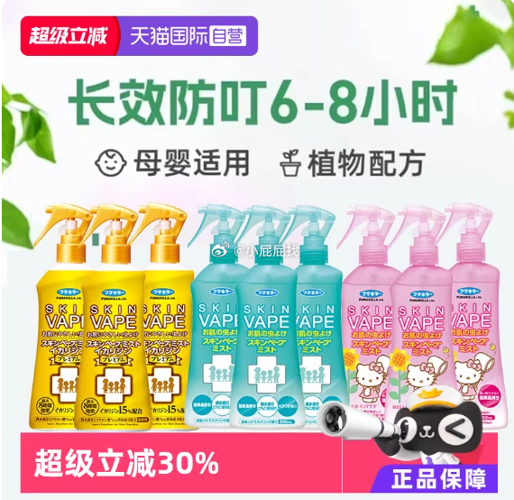【自营】日本vape驱蚊水3瓶装 88会员55.22元到手🛒