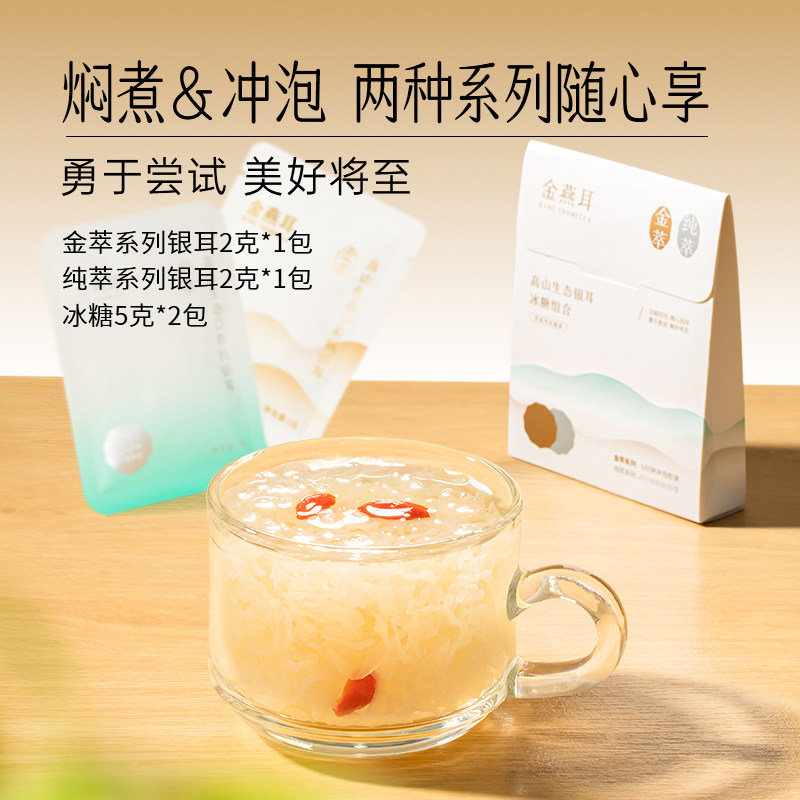 金燕耳有机银耳干货古田冻干高山白木耳免煮冲泡即食羹4g品鉴装