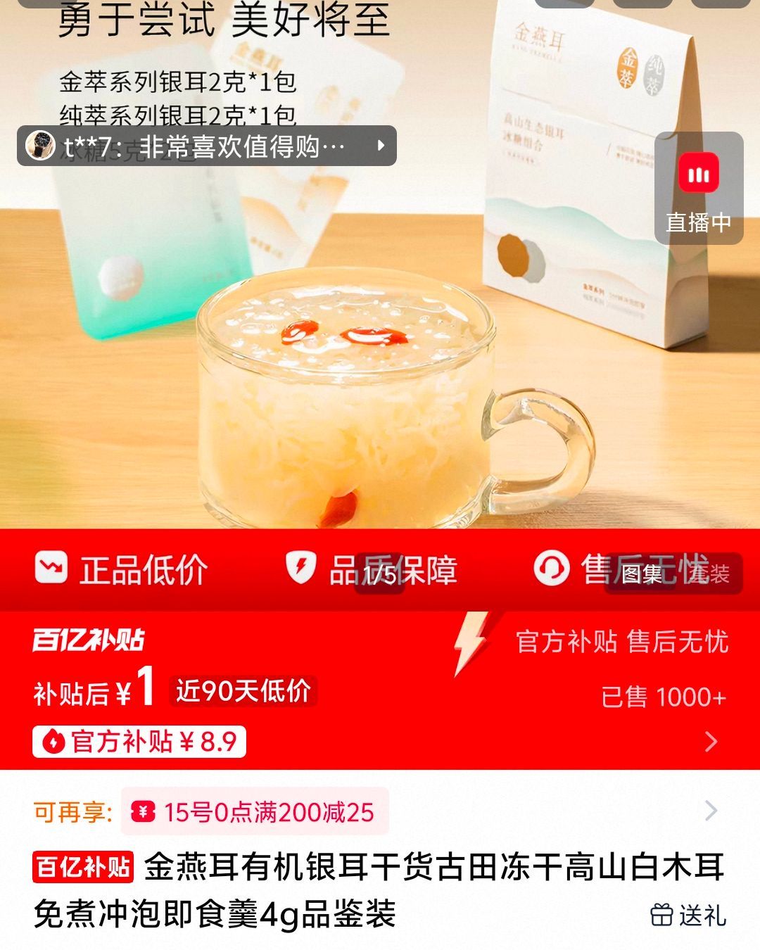 免费试用!金燕耳有机银耳4g品鉴装
