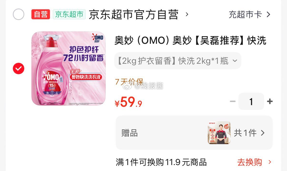 奥妙快洗洗衣液2kg拍下59.9元赠家政2小时