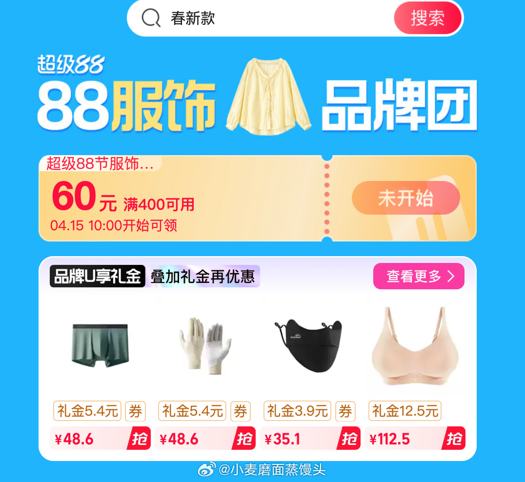 服饰团400-60,15号10点开始。
