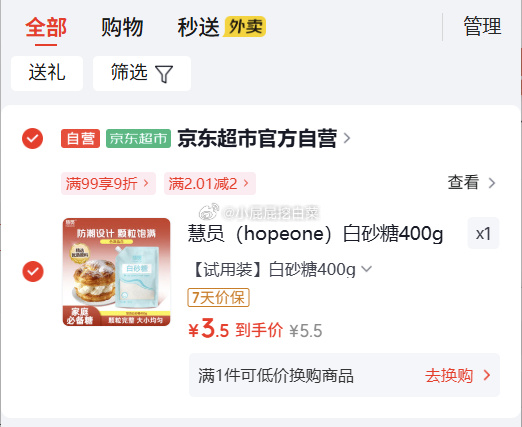 慧员 白砂糖400g,加购到wx”京东购物“小程序提交,3.5