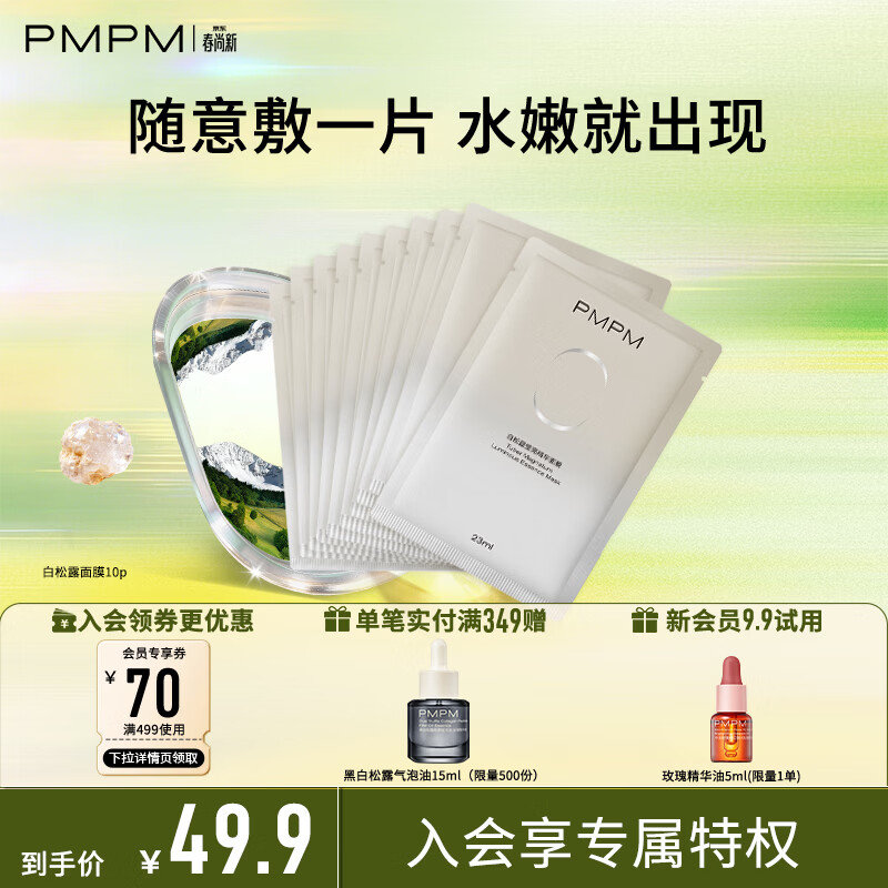 百亿补贴-加倍补 (从app进会场加购) 网页链接 PMPM白松露莹亮精华贴片面膜 (10片装) 学生号21-20券,5首单,叠补贴后5.63亓 PMPM白松露莹亮精华贴片面膜(10片装)补水保湿清透弹嫩护肤品