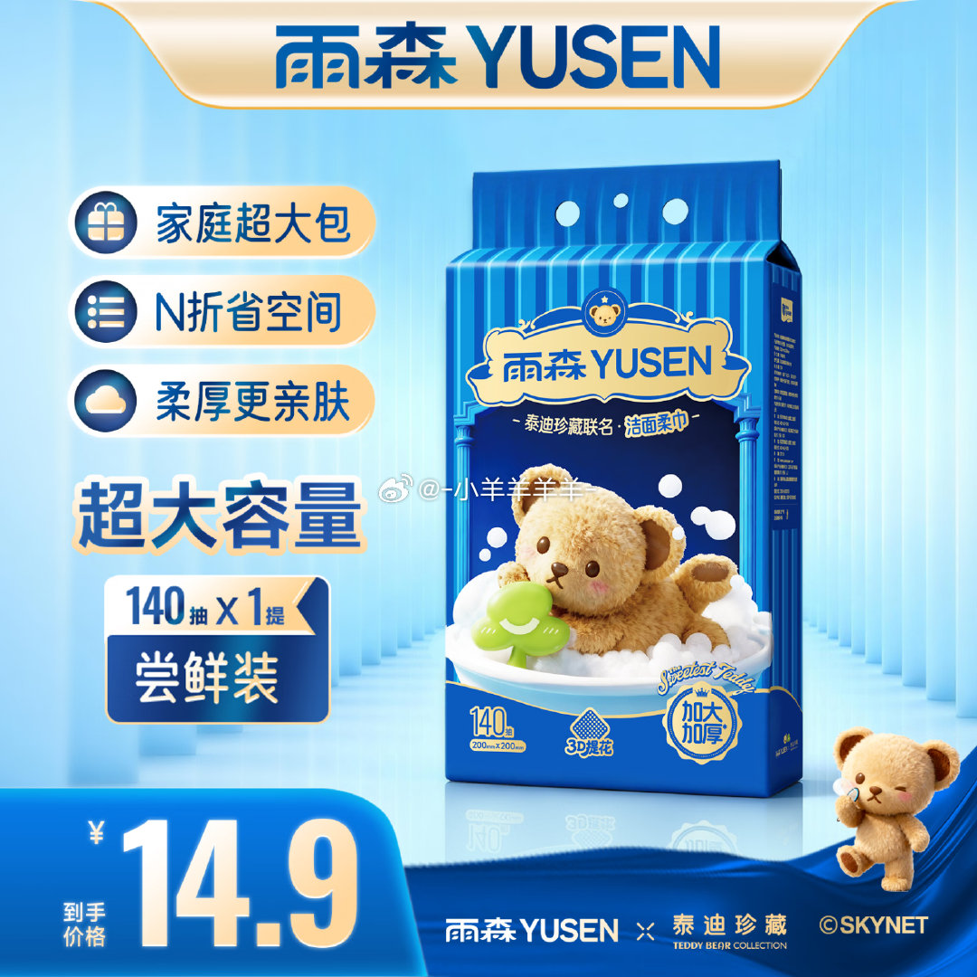 11.9元 雨森 悬挂洗脸巾 140抽
