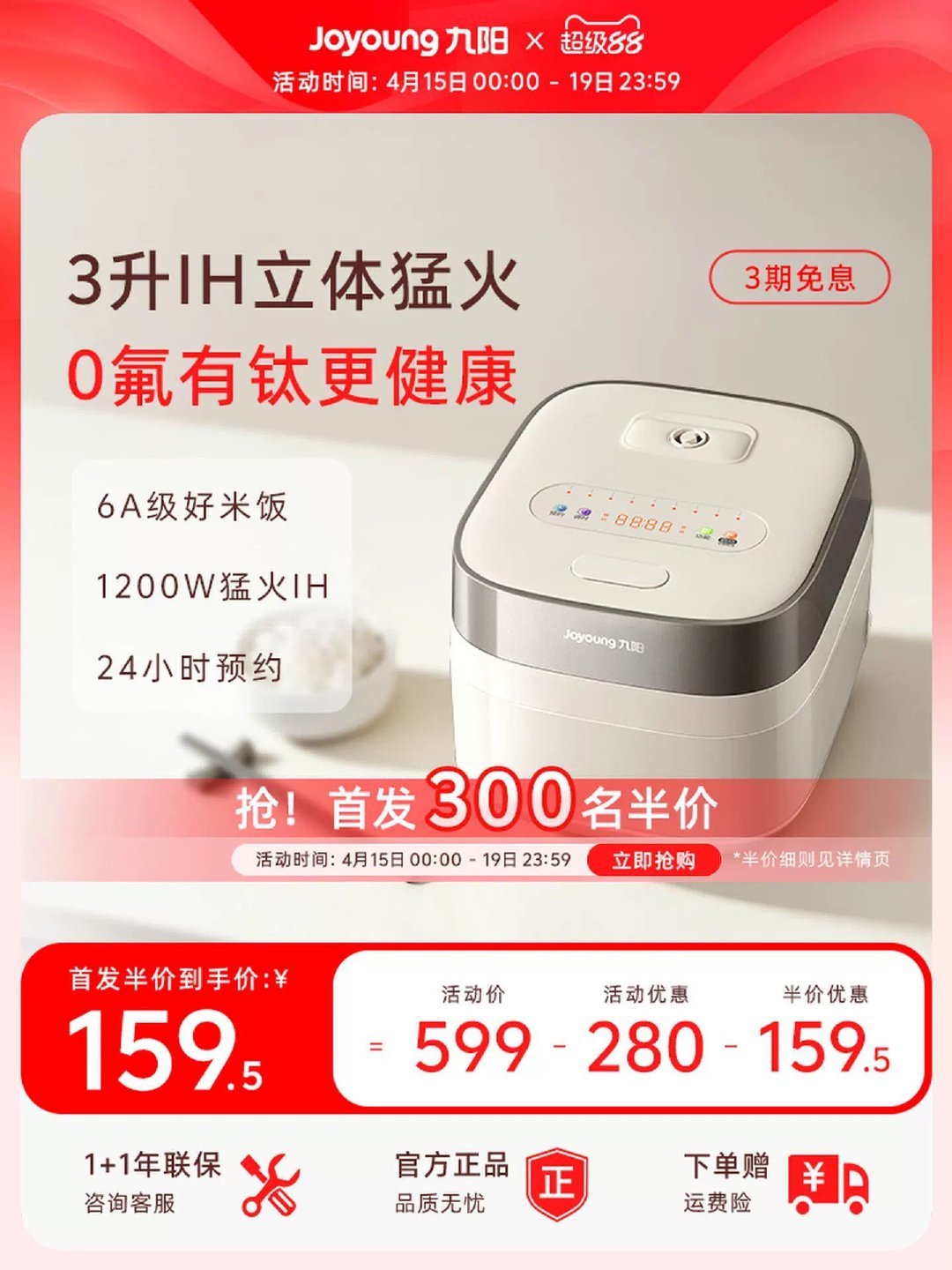 九阳0氟3升IH电饭煲小容量家用迷你多功能升级智能款