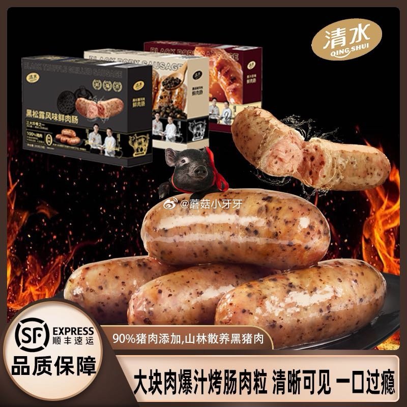 🔥清水烤肠2盒!火山石脆皮纯肉香肠,空气炸锅食材鲜肉肠