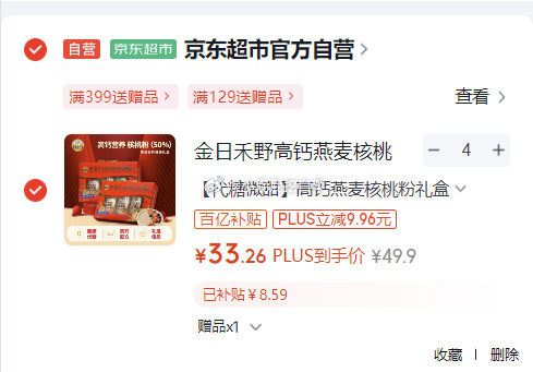 金日禾野高钙燕麦核桃粉礼盒900g,买4件 凑单后30.77/件