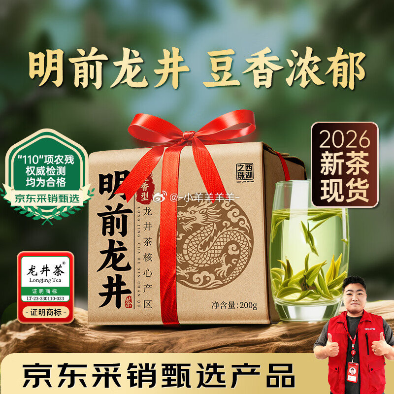 自营西湖之珠明前一级龙井茶200g,首购到手98元