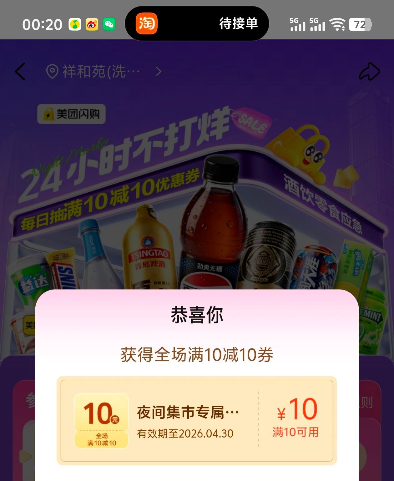美团搜【夜间集市】【按时喝酒】【快乐999】抽神券