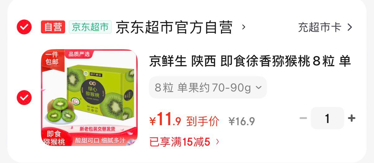 陕西徐香猕猴桃8粒11.9元 领15-5券