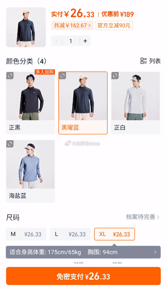 鸿星尔克2026春季新款男士半拉链长袖T恤速干防晒运动服