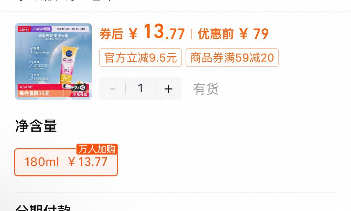 妮维雅防晒霜SPF50仅13.7元🔥(自营180ml)