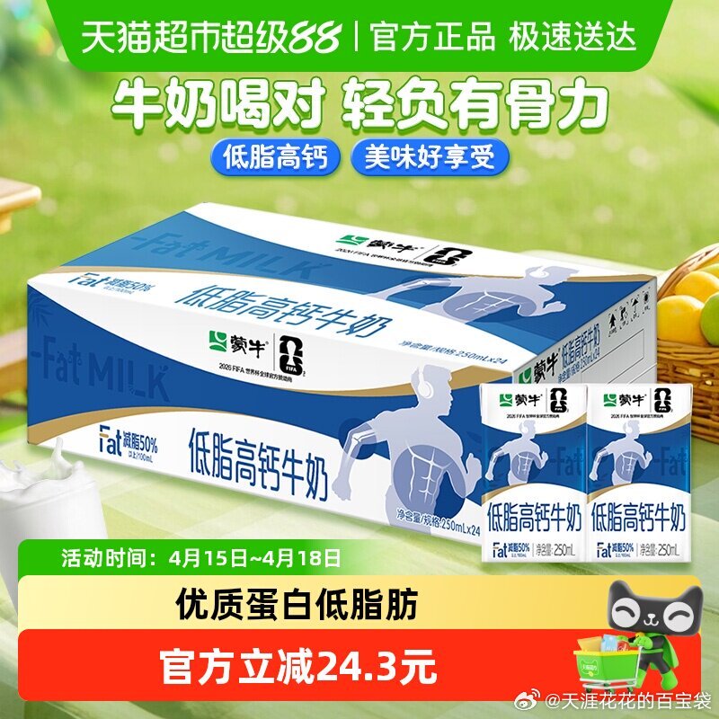 蒙牛 低脂高钙牛奶250ml*24盒,下拉详情页叠金币【17】