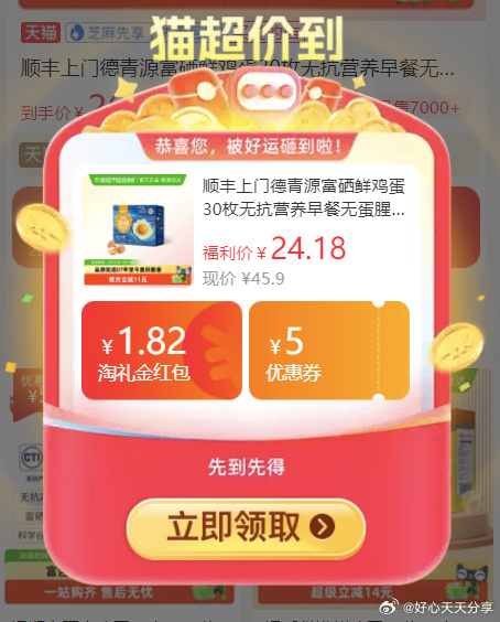 【猫超】德青源 富硒鲜鸡蛋30枚 弹礼金顺丰上门德青源富硒鲜鸡蛋30枚无抗营养早餐无蛋腥味【详情页领券从淘金币-我的足迹加购网页链接 宝贝下领59-6红包 凑后88vip【15.14】 凑款江昊阳四川安岳黄柠檬尤力克当季现摘新鲜水果商用榨汁小金桔整箱