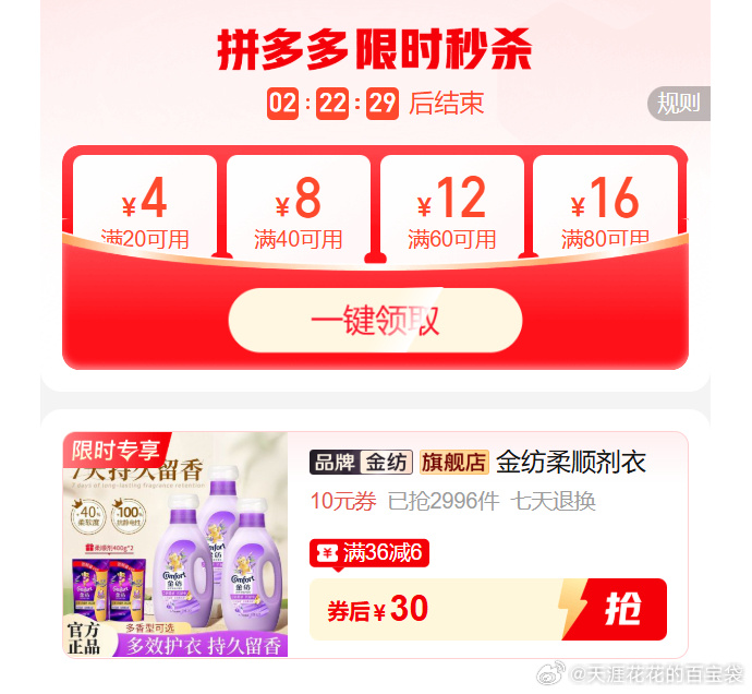 PDD叠36-6!金纺柔顺剂7.3斤仅30元!