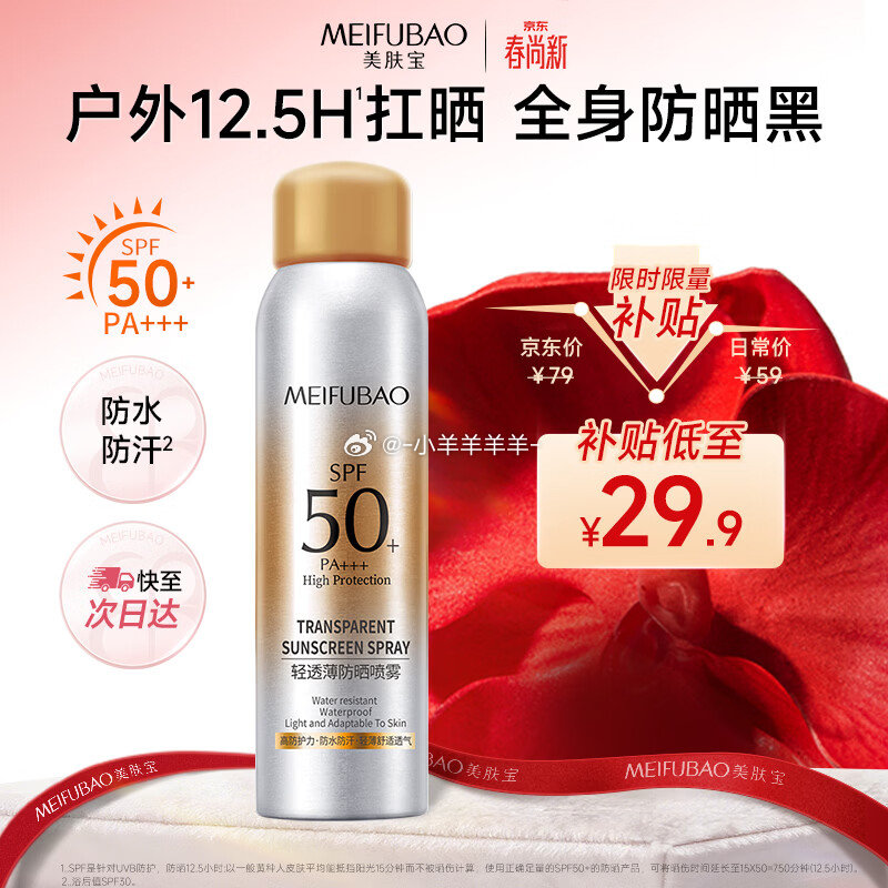 美肤宝防晒喷雾180ml拍下24.9元