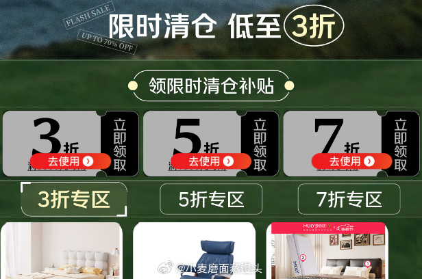 家具券防身,3折、5折、7折。
