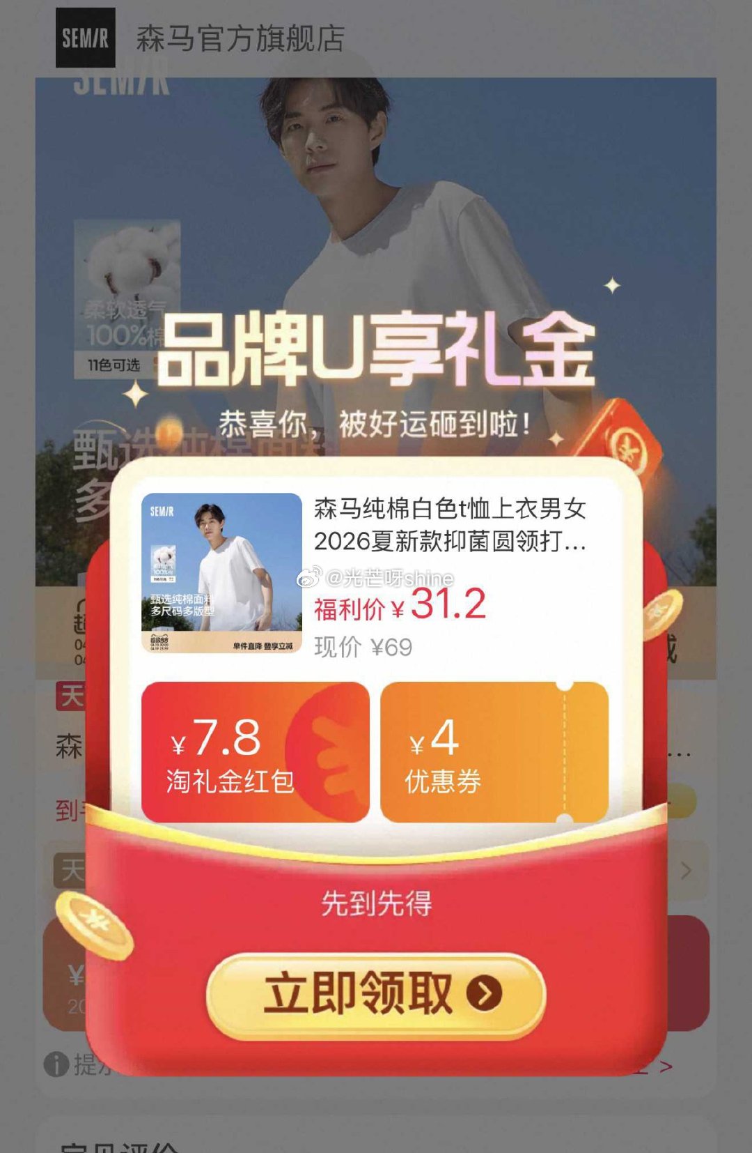 森马纯棉白色t恤,到手【17.45】 1️⃣弹礼金领取,森马纯棉白色t恤上衣男女2026夏新款抑菌圆领打底衫纯色体恤短袖 2️⃣领200-25消费劵,网页链接 3️⃣买600-90劵,直播-超级88大额券 4️⃣进直播间网页链接 弹9折主播劵,购物袋搜“496”加购1件 5️⃣浏览收藏,进金币频道网页链接从足迹加购1件同规格 6️⃣凑单2款:拍8件网页链接,拍1件网页链接 7️⃣回购物车t恤数量改1,一起提交折t恤到手【17.45】