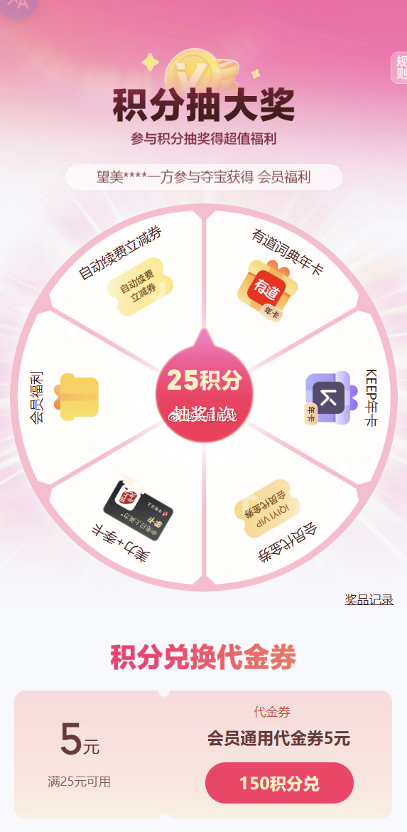 爱奇艺会员积分抽奖活动