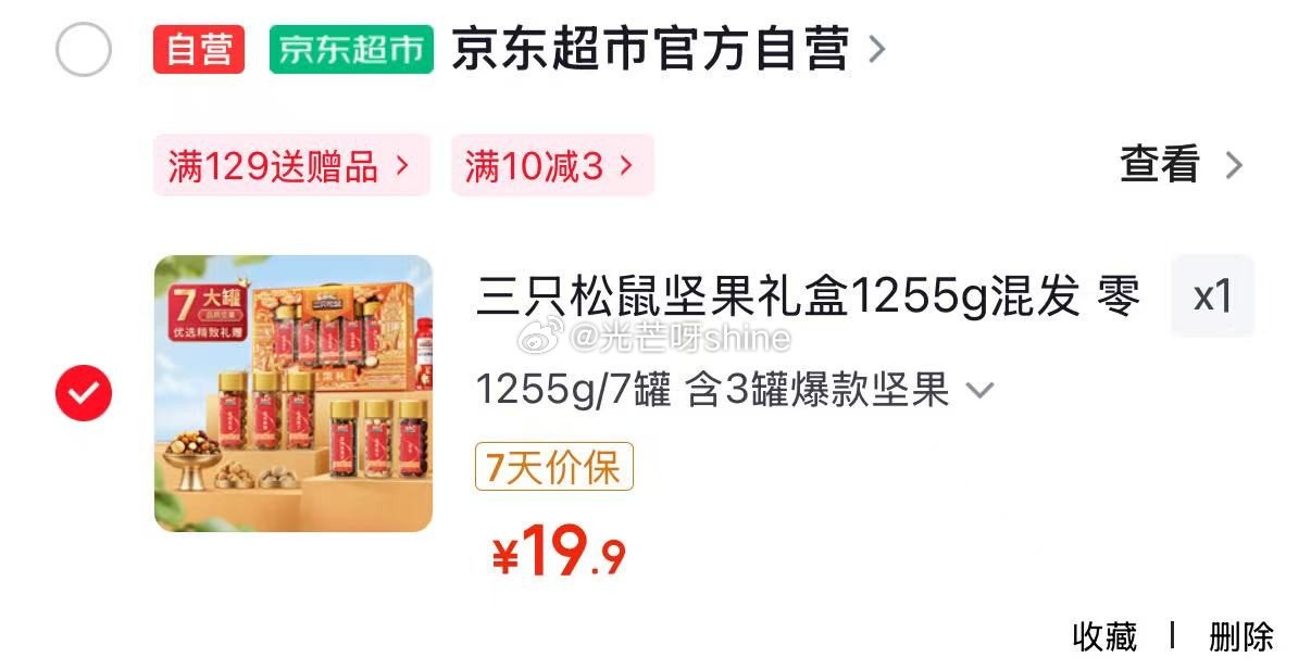 地区价 厦门地区 三只松鼠坚果礼盒1255g混发【19.9】 三只松鼠坚果礼盒1255g混发 零食大礼包核桃夏威夷果 团购送礼 广州地区 三只松鼠纯坚果礼盒2110g混发【49】 三只松鼠纯坚果礼盒2110g混发零食礼包干果送礼长辈企业团购