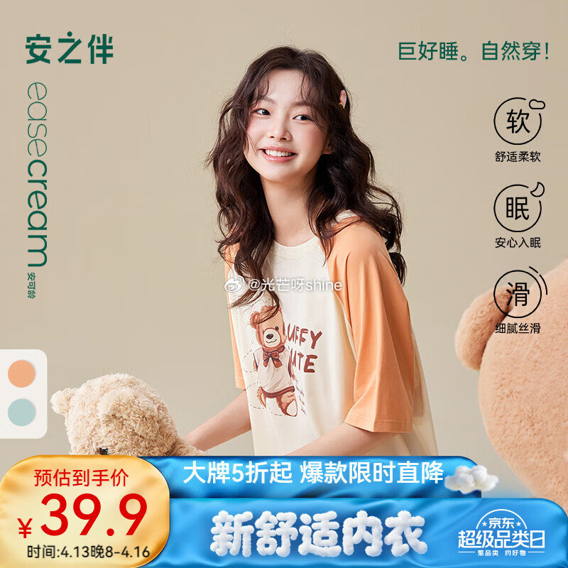 领5折券 网页链接 安之伴 巨凉感 睡衣纯棉可外穿家居服【49】 安之伴【巨凉感】睡衣女夏季2026新款纯棉甜美可爱卡通宽松可外穿家居服 浅橘... 安之伴 巨凉感 夏季睡裙女短袖纯棉睡衣【39】 安之伴【巨凉感】夏季睡裙女短袖纯棉宽松时尚卡通图案中长款睡衣大码 浅橘色 M