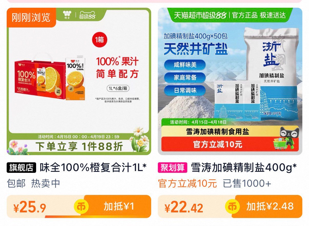 淘金币拍味全橙汁1L*6盒💰25.9