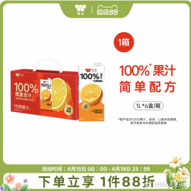 味全100%橙复合汁1L*6盒 常温果汁【25.9】