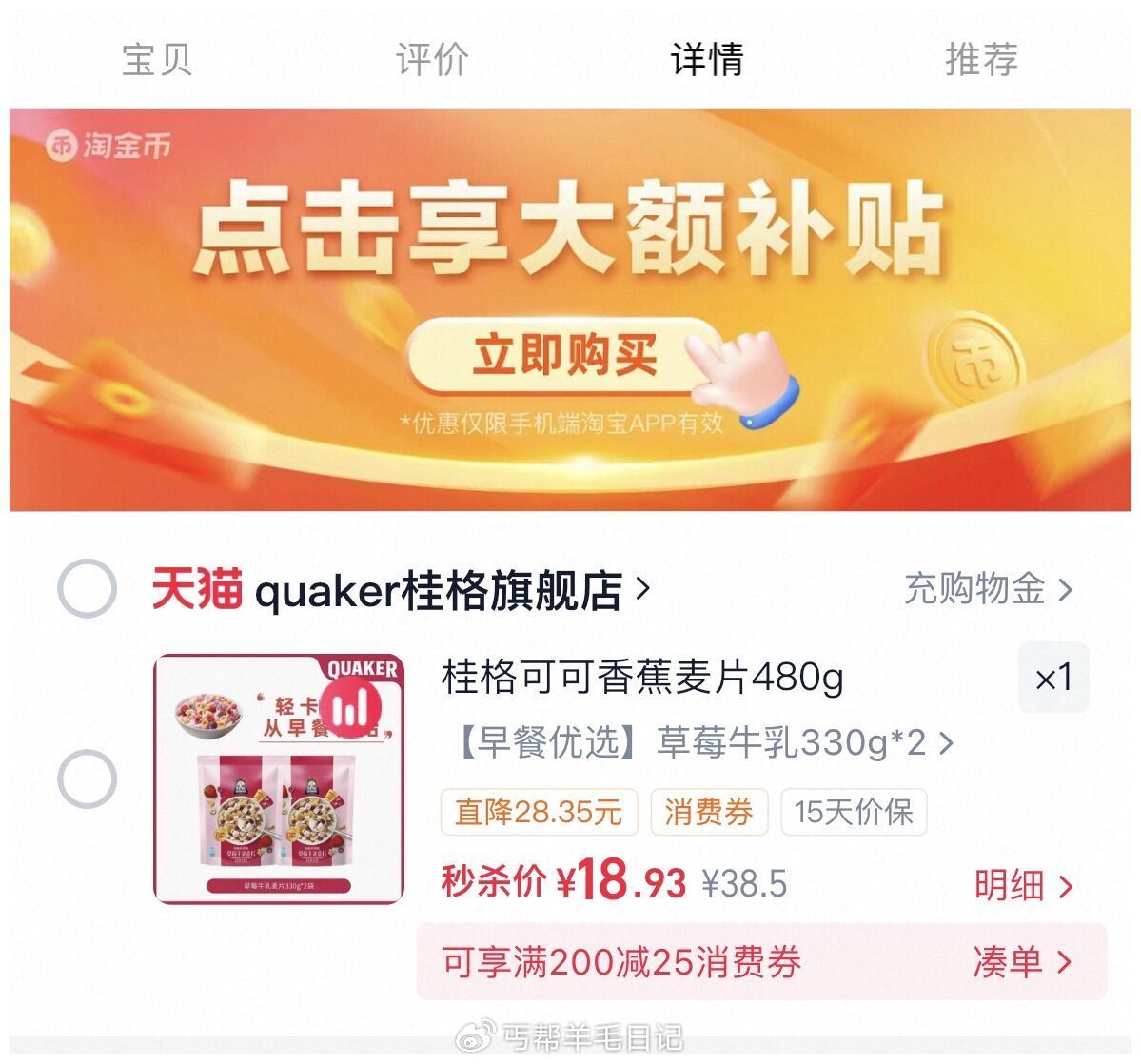 桂格草莓牛乳脆麦片18.9元‼️ 健康早餐代餐