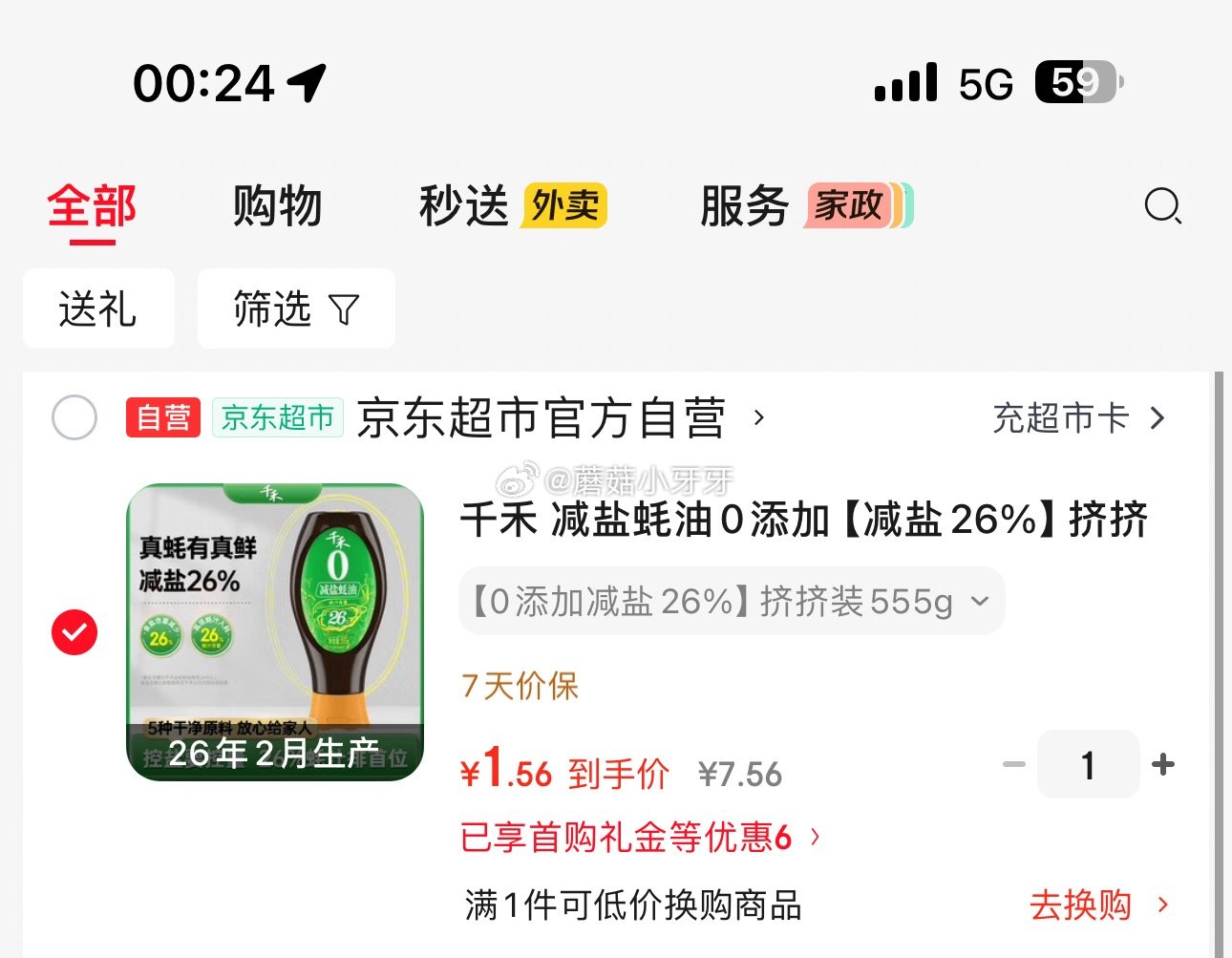 🐶东3-2券!千禾减盐蚝油挤挤装555g低至1.56元