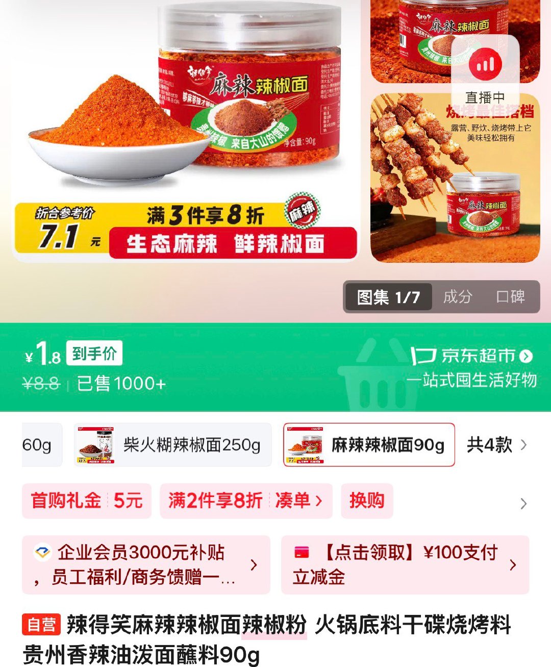 辣得笑麻辣辣椒面辣椒粉 火锅底料干碟烧烤料 贵州香辣油泼面蘸料90g