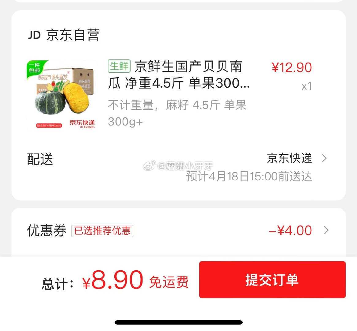 京东APP首页9.9包邮领券 京鲜生贝贝南瓜4.5斤拼团8.9元