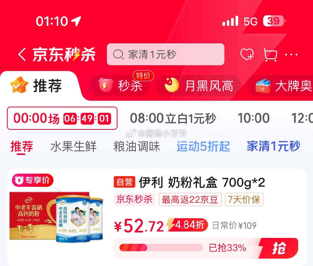 🐶东plus 200-25券网页链接 50-20券 网页链接秒杀会场 (翻到产品加购):网页链接伊利中老年富硒高钙奶粉 礼盒700g*23首单,凑后【42.79】伊利中老年富硒高钙奶粉 礼盒 中老年奶粉 送长辈高蛋白营养品 700g*2凑单网页链接