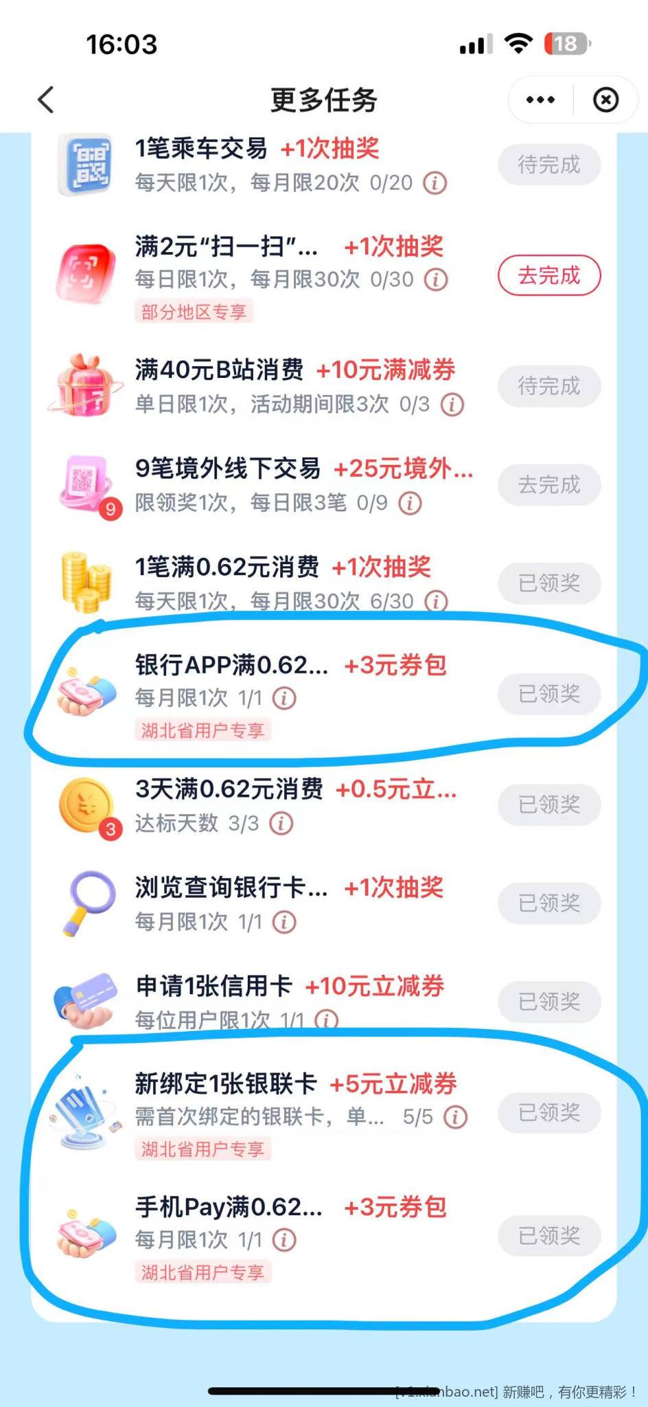 云闪付 湖北用户 玩赚会员中心 还有2个3块的任务记得做 。 PAY任务可以美团买个大于0.62的团购 pay付款就行 银行APP那个用任意银行APP直接扫码。活动每月一次。