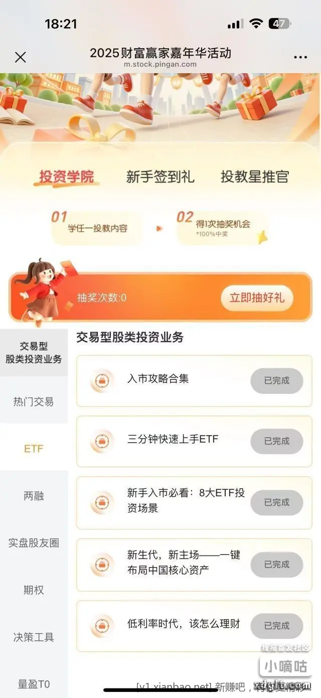 平安证券做任务抽积分,需要有账户。浏览器或者本平台点击打开。积分平安证券APP积分商城换通用立减金。https://m.stock.pingan.com/static/pasbuilding/wealth/activeTwo.html?sharecount=6&passingle=0&WT.mc_id=APP_WLTJFZQ_BANNER&v=10.3.0.1&cd=0164fd82cfaa4419a8d669ef5585cfc6&aid=482741&sid=3800287022&ouid=HD_CFYJJNH&skey=p_ffdcf3b8-3739-404e-ba57-297c2d609f6f&webid=w_33214c69-28f5-4e95-baee-a00c0b16f6dc&unionId=0164fd82cfaa4419a8d669ef5585cfc6&deviceid=