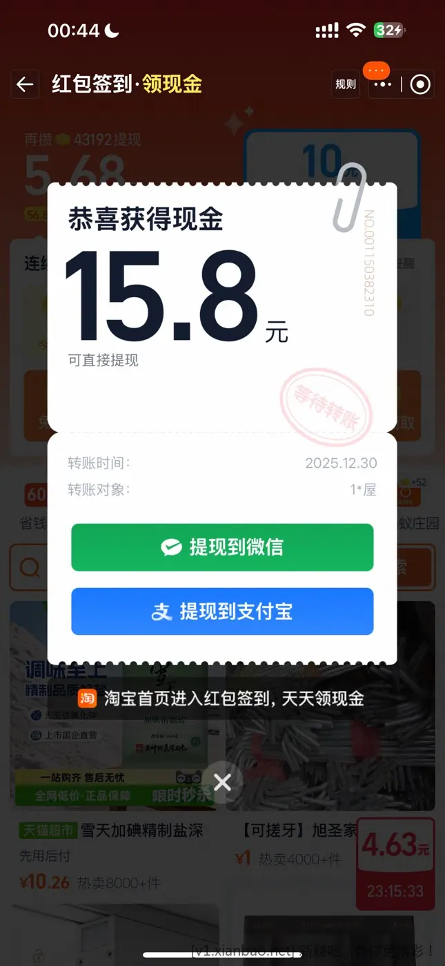 淘宝红包签到有水刚中15.8