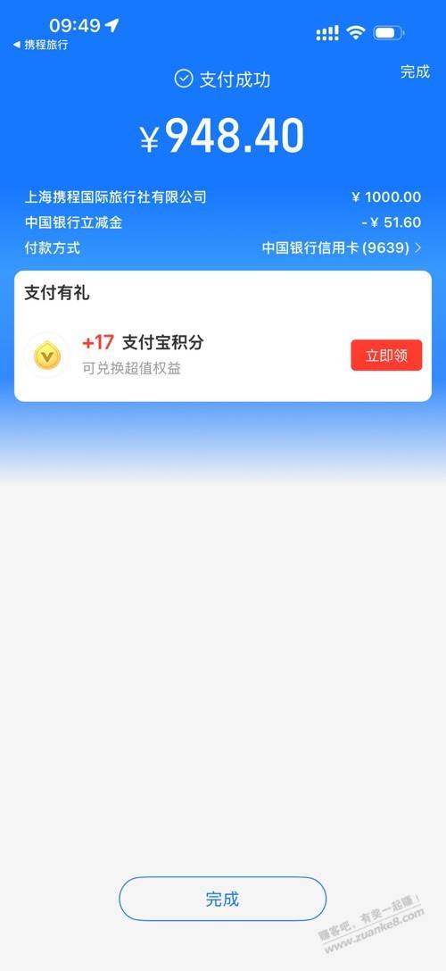买1000携程卡支付宝中信付款