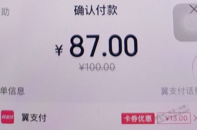 翼ZF 话费87充100 现在有有洞 卡包有送100-3的话费券 现在充是87充100 50-3的不行 只能97充100
