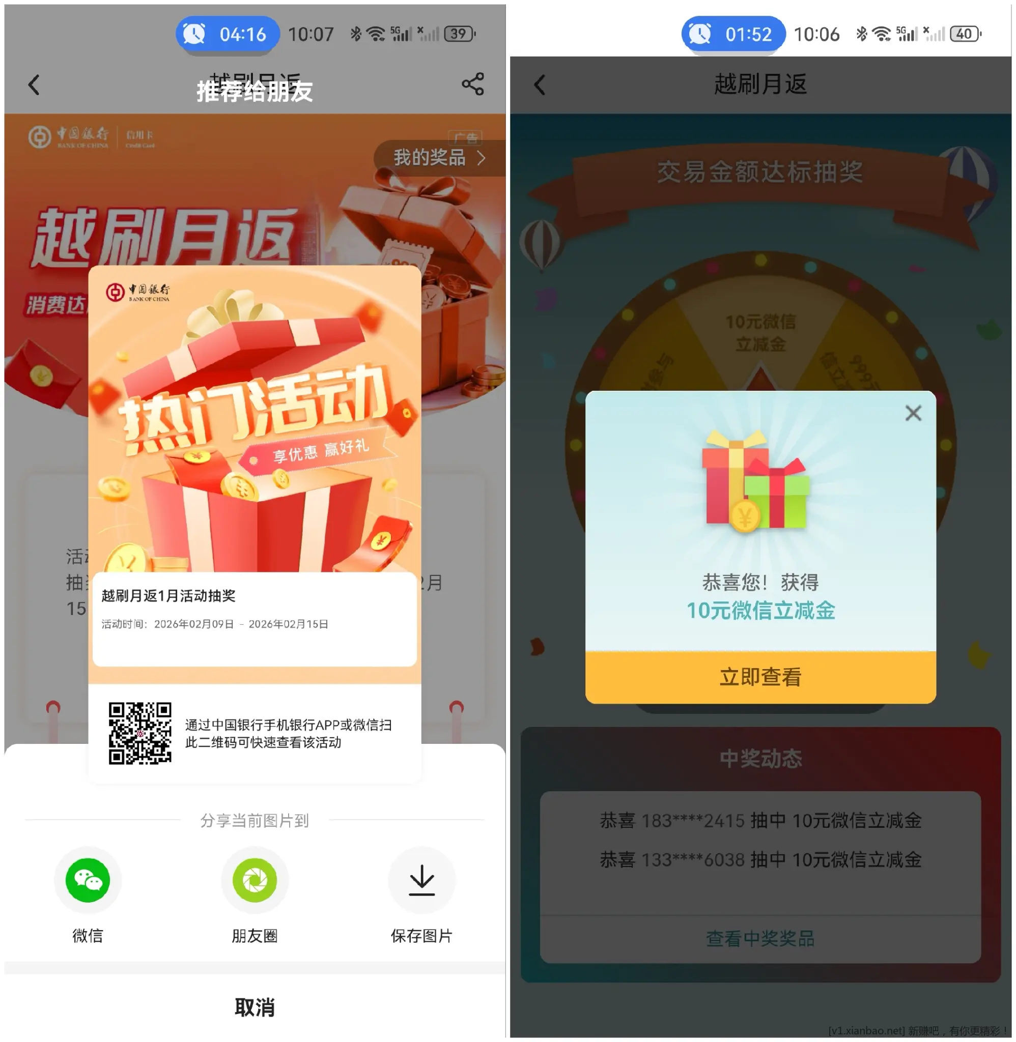 【中国银行】中行信用卡1月越刷月返活动达标抽奖